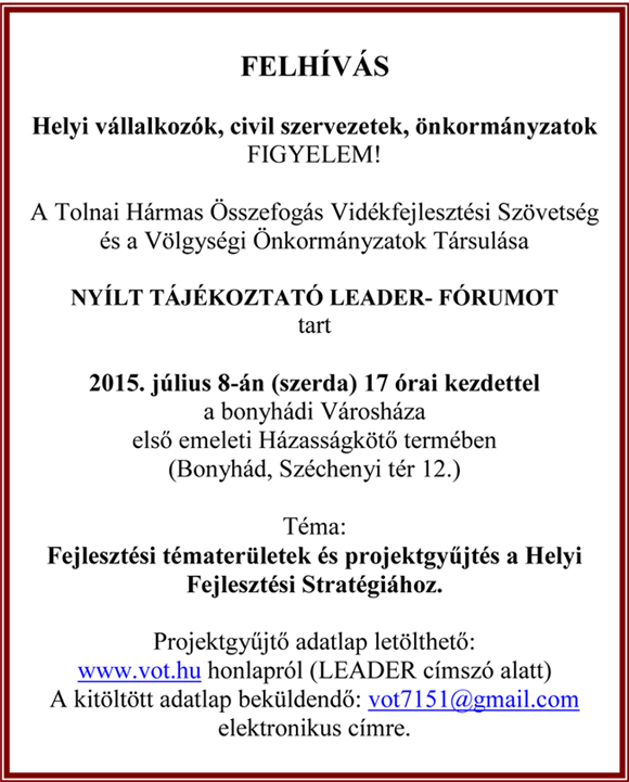 Leader-fórum beszámoló, vállalkozók, civil szervezetek, és önk. számára